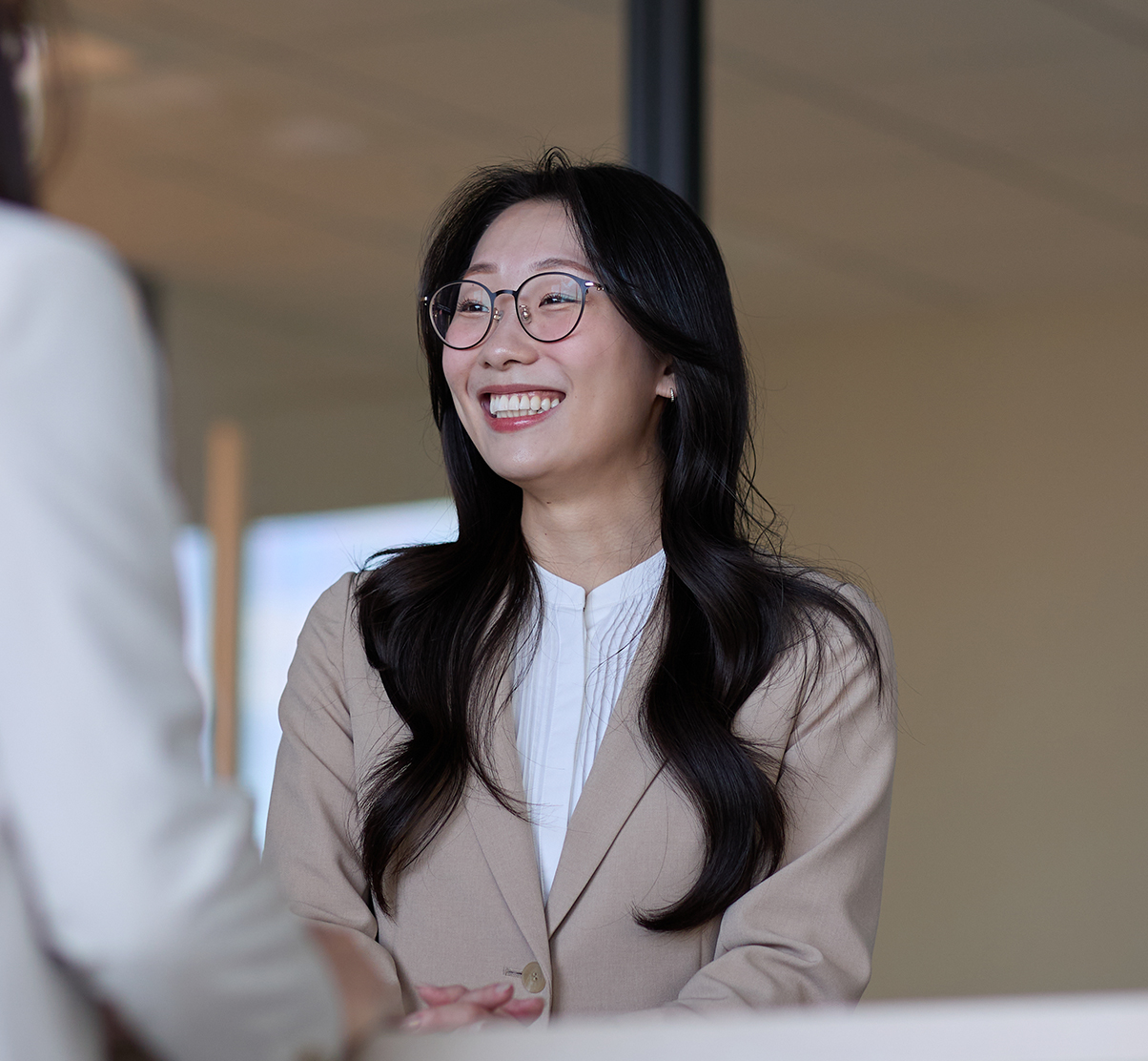 守田:人を大切にする文化が根付いていて、皆さん優しいです。「コンサル」と聞くと、クールなイメージや厳しいイメージを持つ方もいるかもしれませんが、忙しくても相談に乗ってくれる方が多いですし、フラットに向き合ってくれる人が多いです。私自身、転職して本当に良かったと感じています。大企業の部長クラスの方とディスカッションする機会も多く、毎週のように身が引き締まる思いですが、その分、成長できる環境でもあります。成長したいという思いがある方には、ぜひチャレンジしてほしいですね。