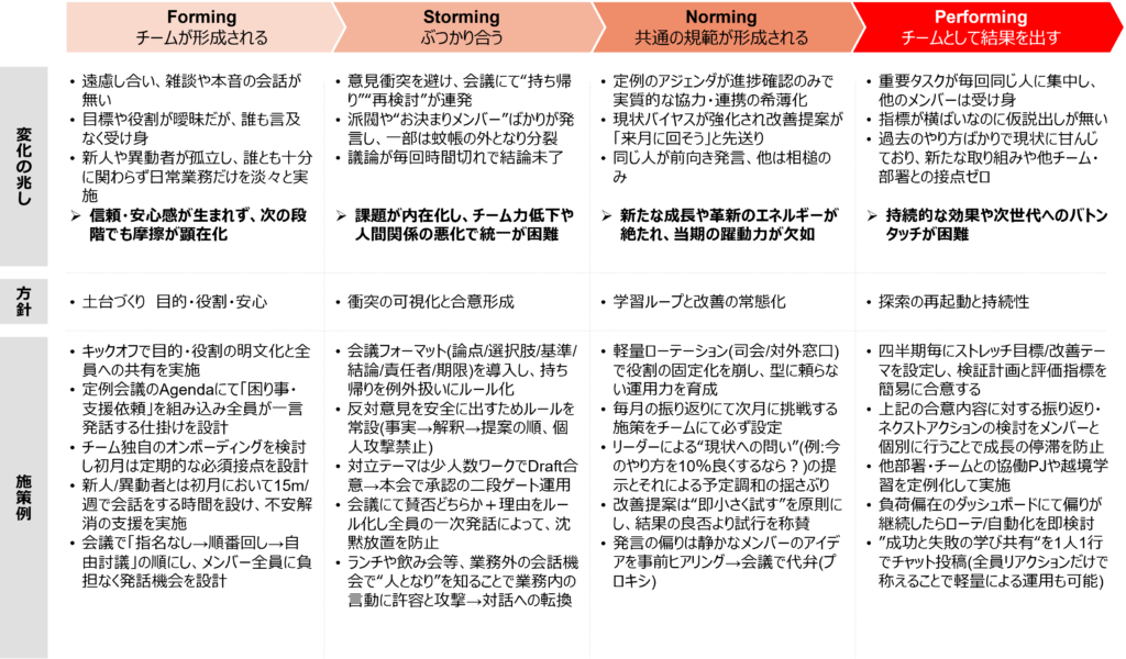 本稿で述べた現代の管理職に求められるチームビルディングは、多くの中間管理職が直面している普遍的なテーマである。現在チームや部門の長として日々マネジメントスキルを磨いている方々、コーポレートHR担当として全社管理職人財の育成施策を検討されている方々にとって、本稿での考察が今後の取り組みを検討する際の一助となれば幸いである。日本を支える企業の組織一つ一つが、継続的な成果創出とサステナブルな組織運営の両立を実現するべく、共に取り組んでいきたい。