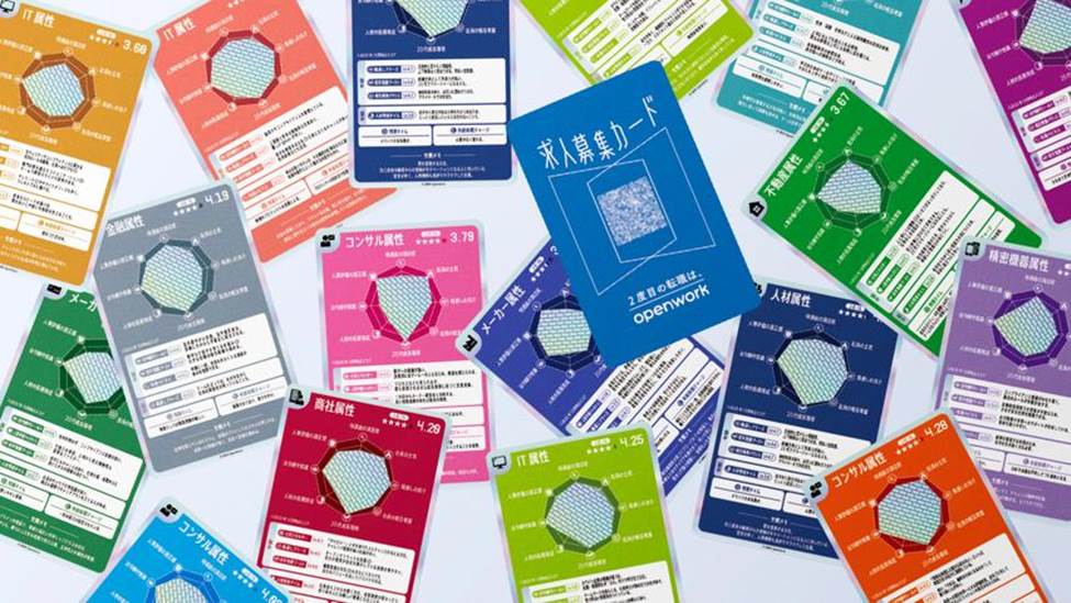 本広告は、OpenWorkに投稿された社員・元社員が考える企業の「強み」や「弱み」が書かれたカード型の求人票をピールオフできる広告で、OpenWorkが保有するクチコミや評価といった膨大なデータをもとに“リアルな企業の姿”をカードとして見える化したものです。
