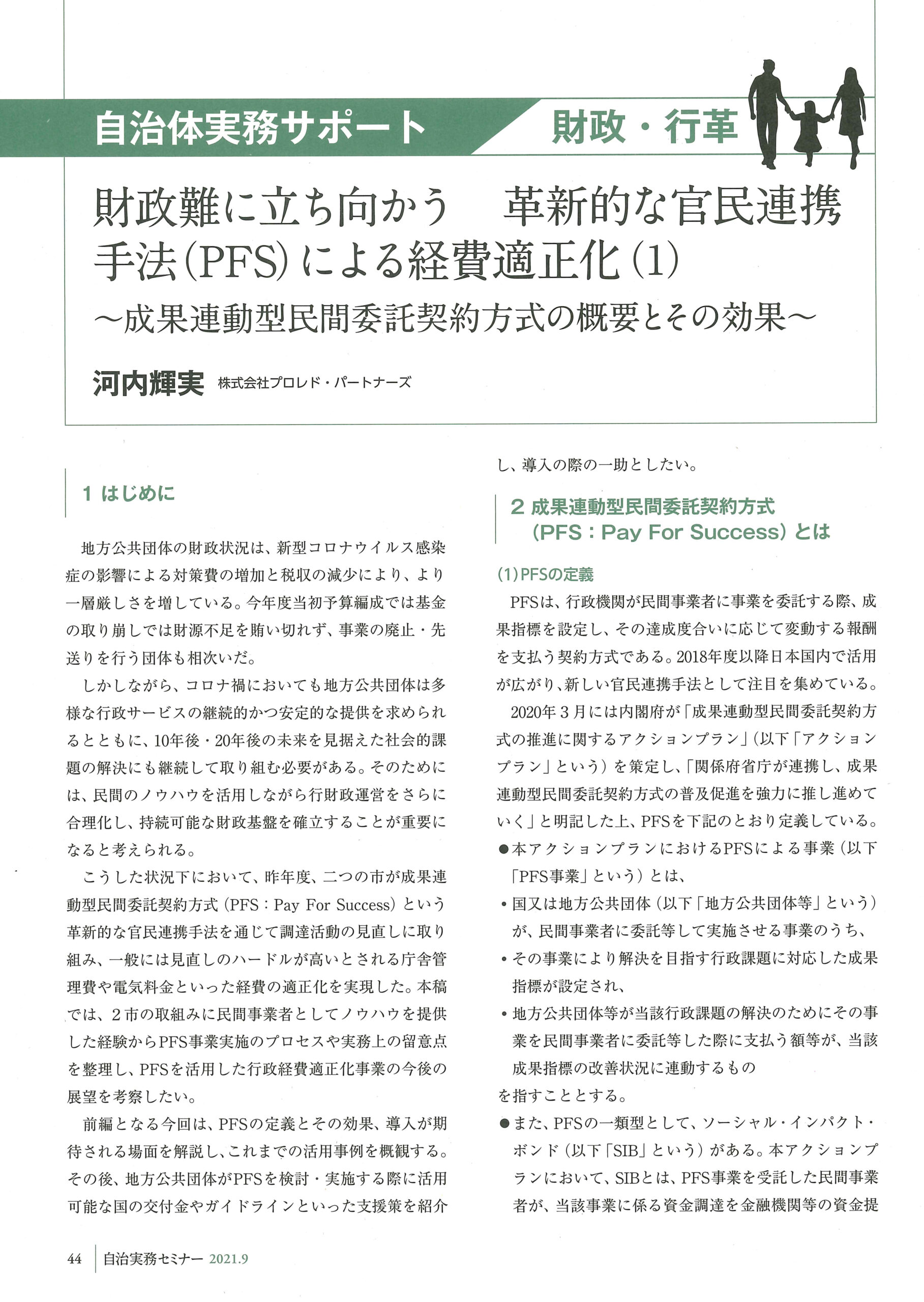 地方公務員のための実務月刊誌『自治実務セミナー』に「財政難に立ち向かう 革新的な官民連携手法(PFS)による経費適正化」というテーマで弊社パブリックセクターのコンサルタントが寄稿いたしました。